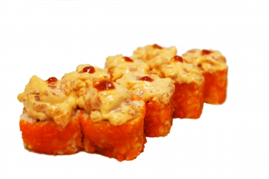 Свежий гребешок и нежный лосось приправленный острым соусом, не оставит равнодушным ни одного любителя острых ощущений